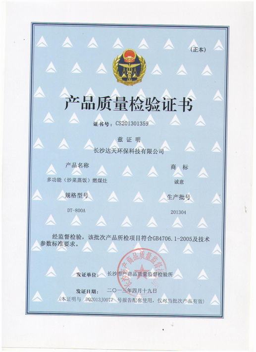 产品质量检验证书
